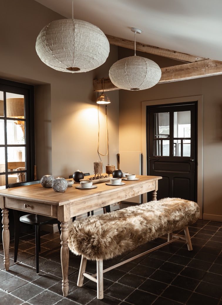 Matières : 100 % peau de mouton, pieds en chêne massif.